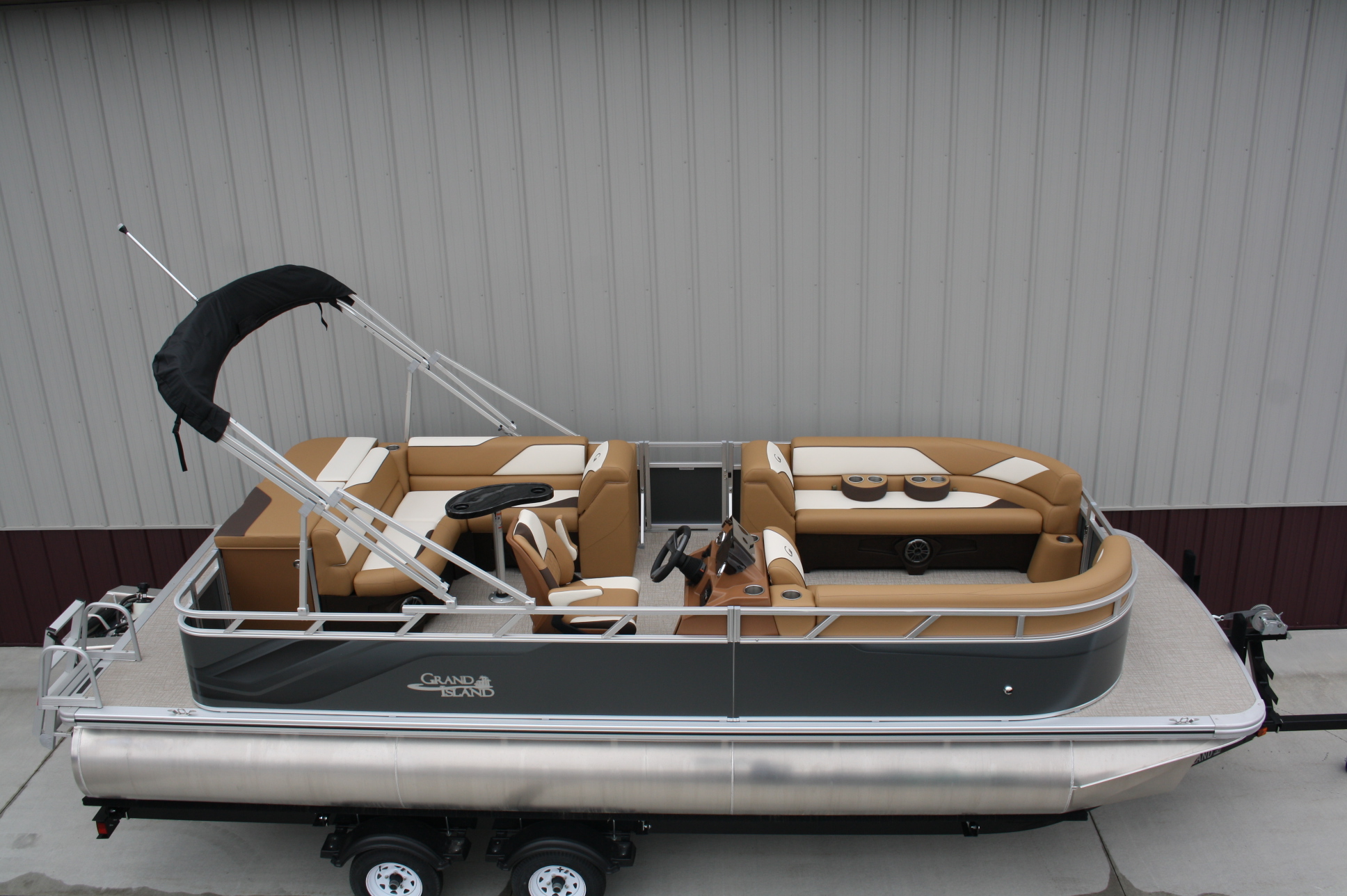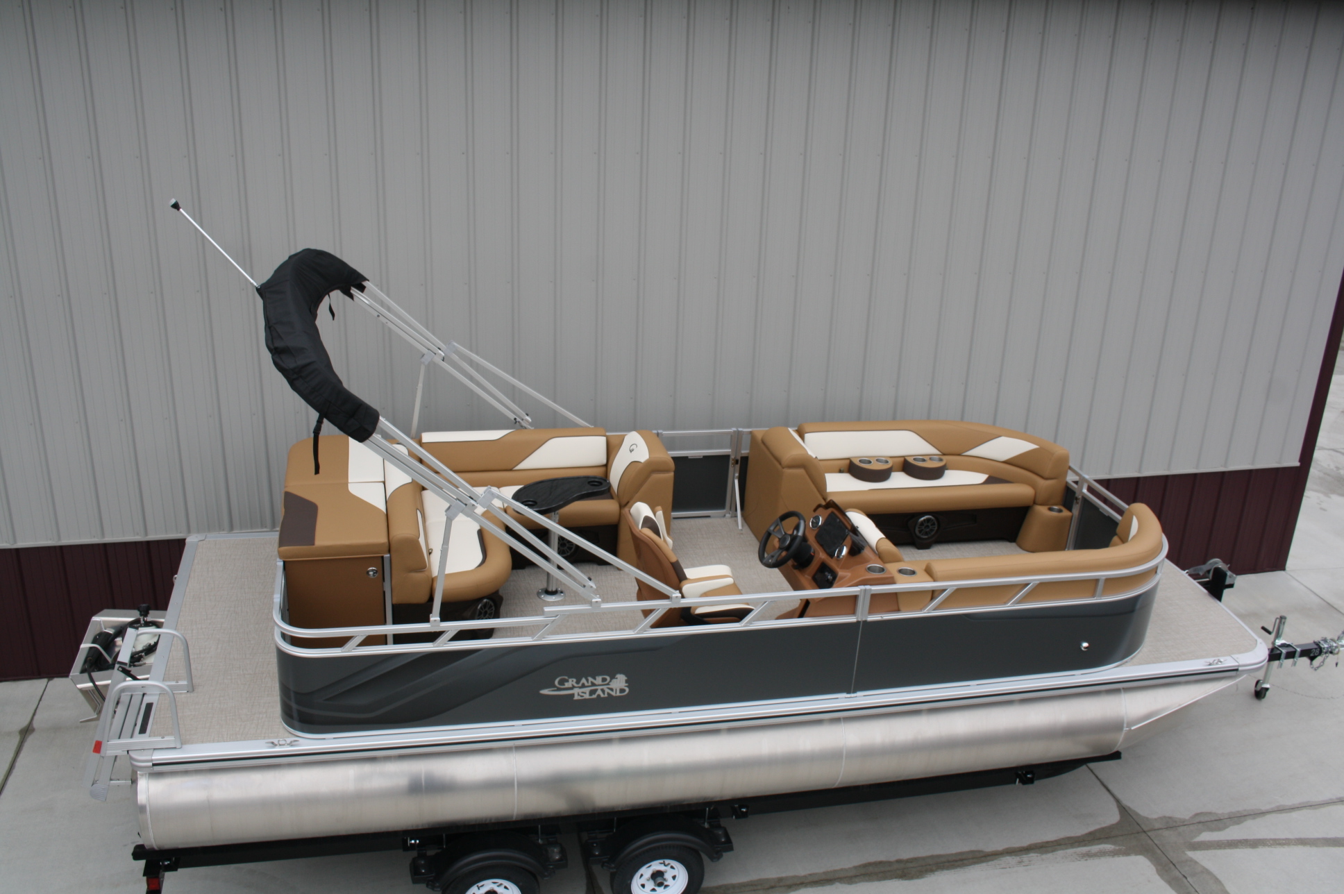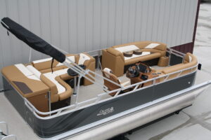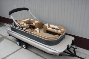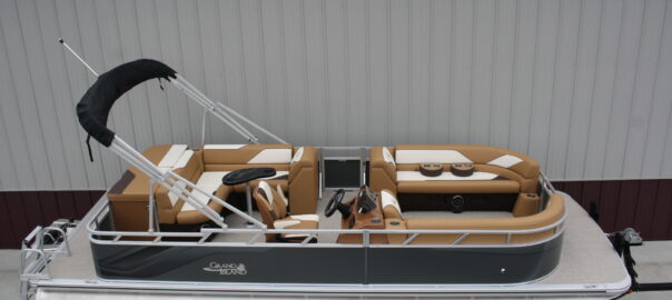 23 ft. Tahoe/Grand Island GT Cruise model and a new 140 hp. Suzuki 4 stroke. No trailer is included but one may be added for $3,199. This boat was opened for photos as we just had to see this color combination. What a beauty!! The engine will be rigged after the sale and will be sold water ready for this price. Add tax and license if in MN. Add $2 per loaded mile for shipping if outstate. Standard features include: blue tooth four speaker stereo, bimini top, rear ladder, two 25 inch floats, built in 25 gal. gas tank, medallion smart gauges, rear swim ladder, sun deck, rear swim deck, 12 volt power source, auxiliary USB charging ports, wrap around benches with chaise lounges, table, windshield, woven vinyl flooring throughout, cognac interior, portable cup holders, three access doors, aluminum seat frames (not the cheaper plastic ones used by our competitors), four stainless steel cleats, docking lights, interior lights, exterior mood lights, nav. lights, heavy duty 50 ounce vinyl wrapped seats (thicker than all of our competitors), float keels, etc. The engine included in the package is a 140 hp. Suzuki 4 stroke EFI with a five year full parts and labor warranty. Get high end flare with the premium fit and finish that Tahoe/Avalon is well known for, at an extremely affordable price. Come see it in person, it will not disappoint. Remember, T & M Marine is the home of NO DEALER FEES and no commissioned sales people. We ship worldwide out of our beautiful new Grand Rapids/Cohasset location and have over 500 pontoons in stock. Feel free to call us at 218-326-4223 too. We do not use AI so you can expect to speak with a knowledgeable, unbiased, pontoon expert.