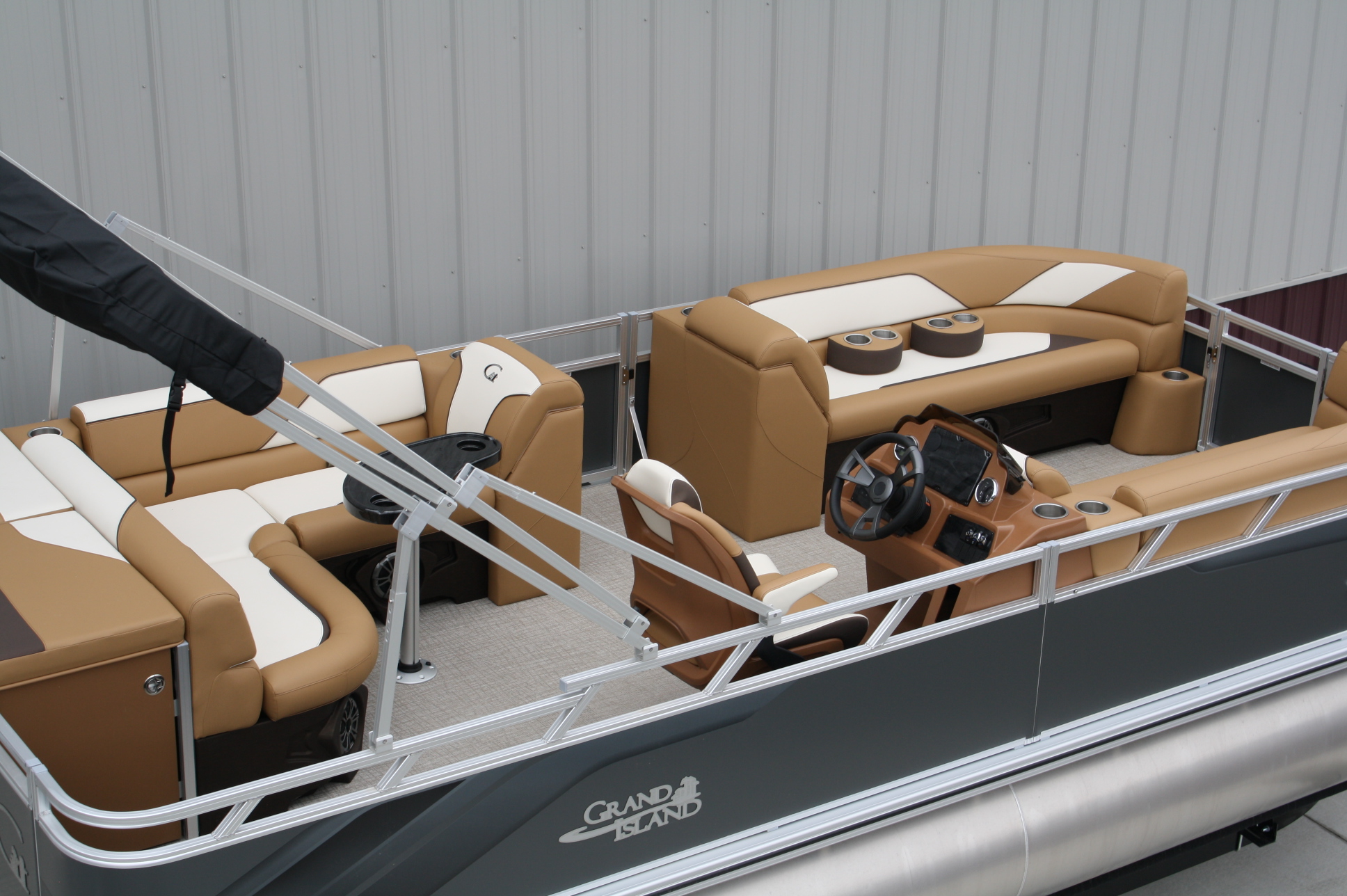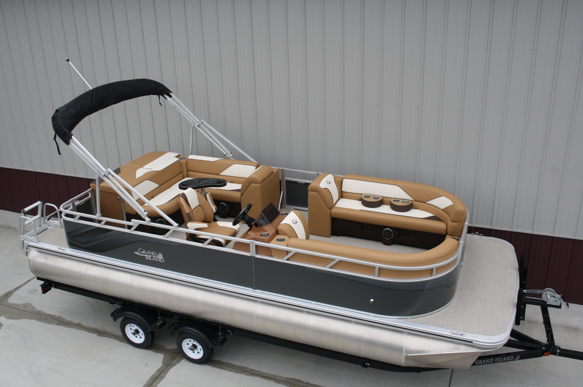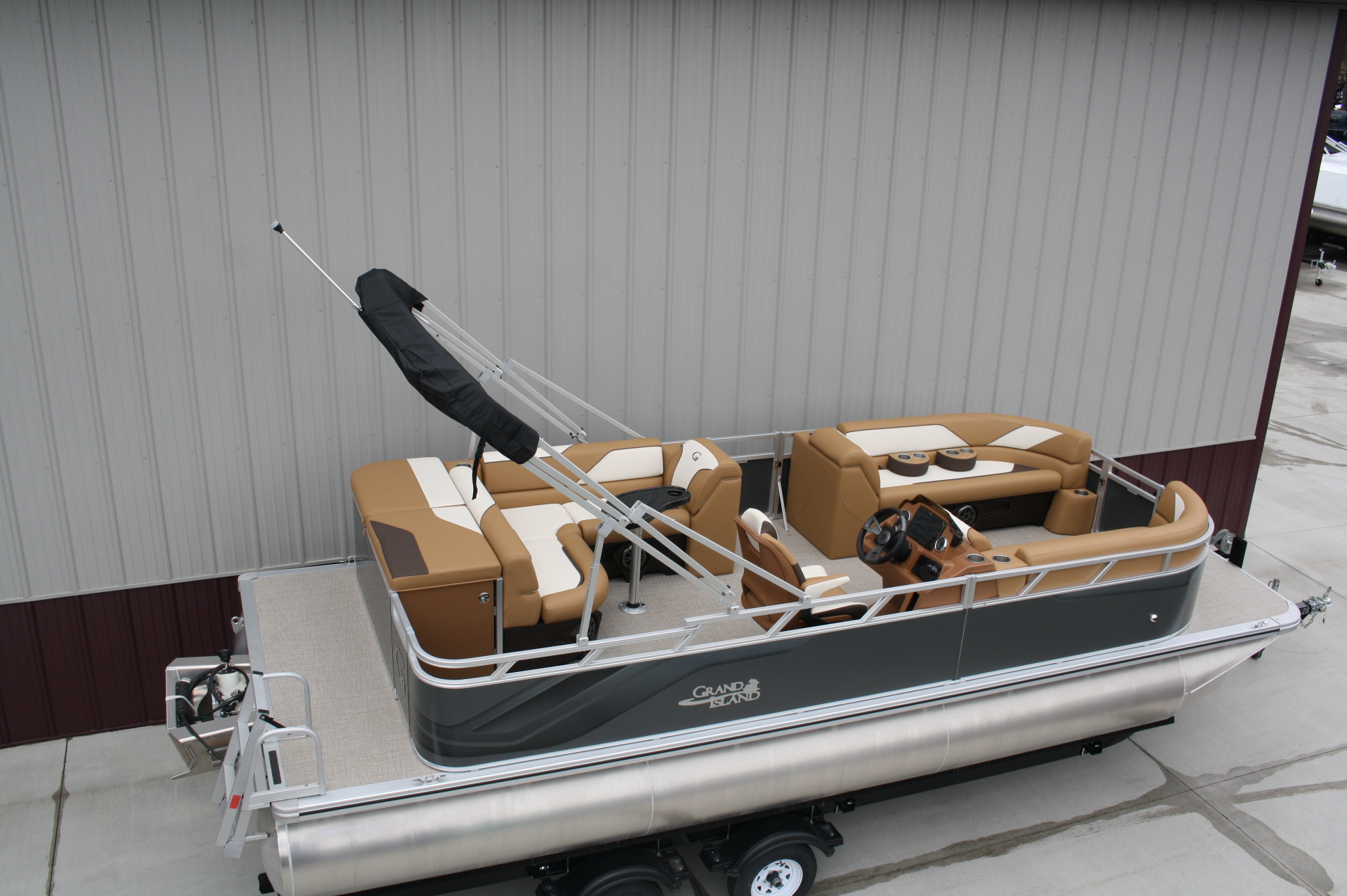 23 ft. Tahoe/Grand Island GT Cruise model and a new 140 hp. Suzuki 4 stroke. No trailer is included but one may be added for $3,199. This boat was opened for photos as we just had to see this color combination. What a beauty!! The engine will be rigged after the sale and will be sold water ready for this price. Add tax and license if in MN. Add $2 per loaded mile for shipping if outstate. Standard features include: blue tooth four speaker stereo, bimini top, rear ladder, two 25 inch floats, built in 25 gal. gas tank, medallion smart gauges, rear swim ladder, sun deck, rear swim deck, 12 volt power source, auxiliary USB charging ports, wrap around benches with chaise lounges, table, windshield, woven vinyl flooring throughout, cognac interior, portable cup holders, three access doors, aluminum seat frames (not the cheaper plastic ones used by our competitors), four stainless steel cleats, docking lights, interior lights, exterior mood lights, nav. lights, heavy duty 50 ounce vinyl wrapped seats (thicker than all of our competitors), float keels, etc. The engine included in the package is a 140 hp. Suzuki 4 stroke EFI with a five year full parts and labor warranty. Get high end flare with the premium fit and finish that Tahoe/Avalon is well known for, at an extremely affordable price. Come see it in person, it will not disappoint. Remember, T & M Marine is the home of NO DEALER FEES and no commissioned sales people. We ship worldwide out of our beautiful new Grand Rapids/Cohasset location and have over 500 pontoons in stock. Feel free to call us at 218-326-4223 too. We do not use AI so you can expect to speak with a knowledgeable, unbiased, pontoon expert.